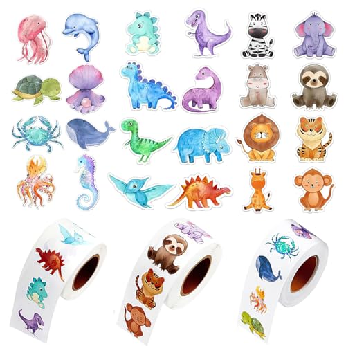 TAIHOBO 1 500 stycken klistermärken barn dinosaurier djurmönster, söta dino-klistermärken djur, 24 mönster belöningsklistermärken, självhäftande klistermärken djur för scrapbooks koppar dator