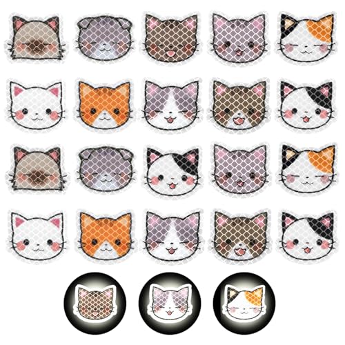 Yuanchu 20 st reflekterande klistermärken, självhäftande söta klistermärken med hög synlighet, varning reflekterande klistermärke vattentät säkerhetshjälm, kattklistermärke för cykel, reflekterande