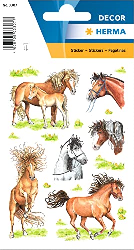 HERMA 3307 djurklistermärken för barn, ritade hästar (18 klistermärken, matt papper, matt) självhäftande, permanent självhäftande motivetiketter för flickor och pojkar, färgglada