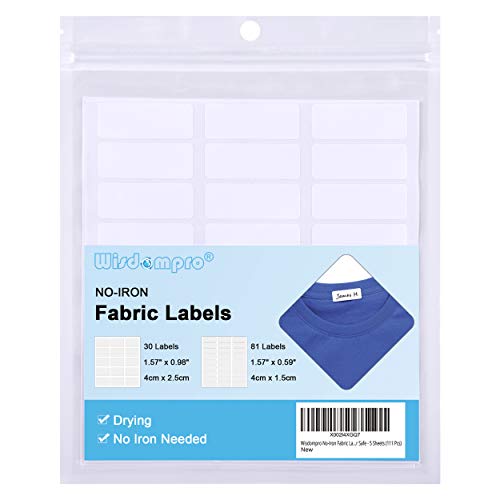 Wisdompro 111 st etiketter utan järn, självhäftande klädesplagg klistermärken kläder namnlappar för vårdhem, daghem, läger, skola - vit