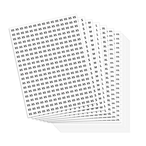 Hebayy 5400 st kläder storlek runda klistermärken etiketter megapaket i 7 storlekar (XS, S, M, L, XL, XXL, XXXL), 1/2 tum i diameter, svart