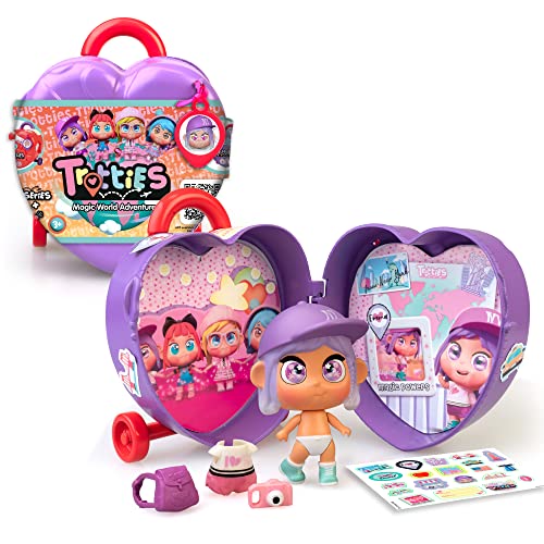 Trotties - Mini Emma Trolley, liten portfölj med 1 docka, kläder och tillbehör, 2 bakgrundsscenarier och klistermärken, spara och ta med överallt, 4 modeller, +3 år, berömd (TFT05300)