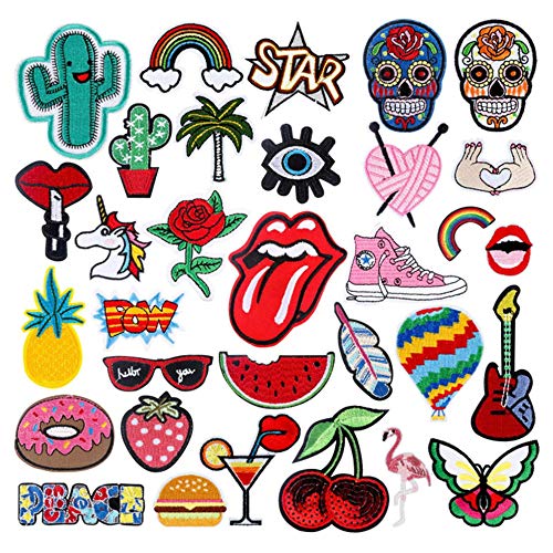 Yolev 30 st broderade stryklappar för kläder jackor applikationer klistermärken sy på lappar för kläder ryggsäckar jackor jeans klänning hattar gör-det-själv tillbehör