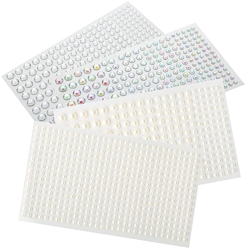 1110 st pärlor strass klistermärken – självhäftande pärlor och kristall ädelstenar klistermärken (3 mm-6 mm) för ansikte, hår, spik, kläder och gör-det-själv-hantverk