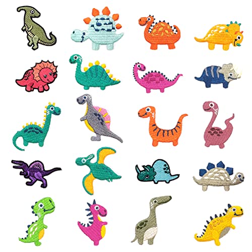 TIANNAIT 20 stycken små dinosaurie-klistermärken, tecknade djurfläckar för barn, stryk- och sömnadsklistermärken, gör-det-själv-klädtillbehör, för kläder, hattar, ryggsäckar (olika mönster)