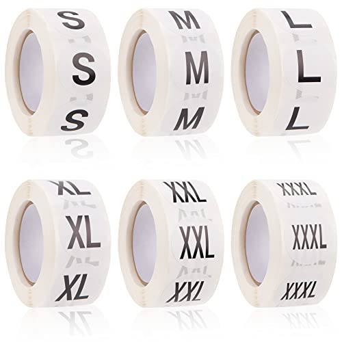 3 000 stycken klädstorlekar klistermärken självhäftande etiketter 2,5 cm diameter runda kläder storlek klistermärken 6 rullar, 6 storlekar (S, M, L, XL, XXL, XXXL)