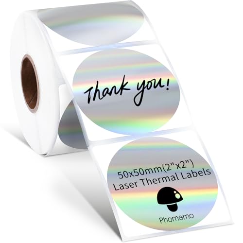 Phomemo 2 Tum runda Termiska Etiketter(50x50mm),Runda Klistermärken,Runda Holografiska Silver Termiska Klistermärken För DIY,Tack,Logotyp,Namn,QR-koder etc(400Etiketter/rulle,1 rulle)