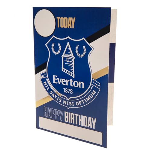 Everton fotbollsklubb födelsedagskort. Levereras med klistermärken för att anpassa din ålder och namn, blå