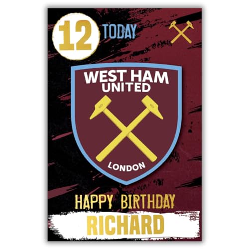 West Ham fotbollsklubb födelsedagskort med klistermärken för att anpassa din ålder och namn, vinröd röd