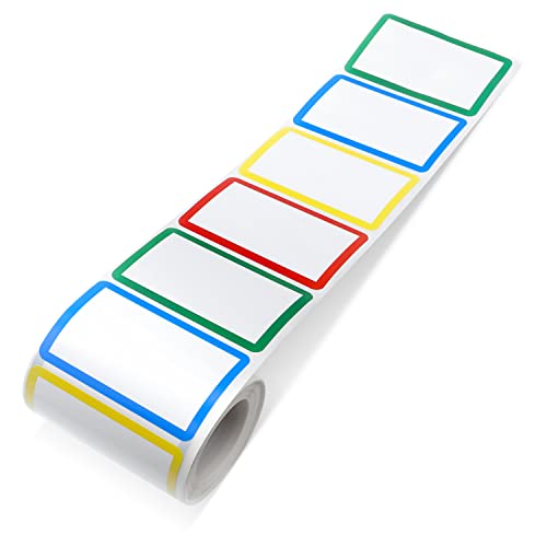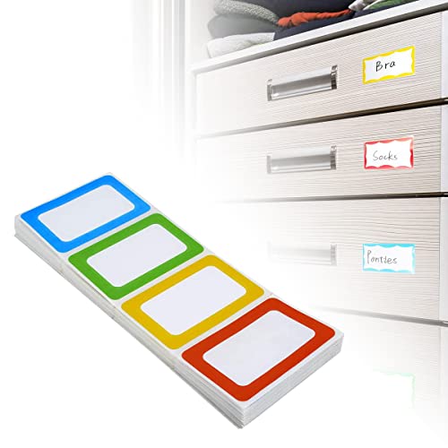Namnskylt klistermärken 200 stycken namn etiketter klistermärken självhäftande färgglada gräns namn etikett klistermärken för skola, kontor, fester, kök, barnkläder – 89 x 57 mm, 4 färger (förpackad)