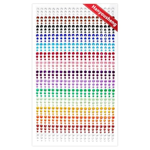 Hanyousheng 900 st klistermärken Strass, 3 mm 4 mm 5 mm klistermärken flerfärgade självhäftande pärlor, runda kristallädelstenar, diamantfärgade självhäftande för ansikte ögon naglar dekorationer