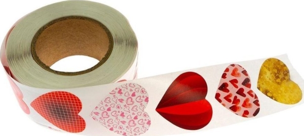 Hedlunds of Sweden Stickers/Klistermärken på OF rulle Etikett Hjärtan hjärta Röd 40x47mm 26x42mm 1000/RL etiketter/rulle unisex