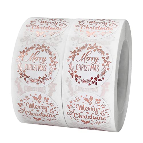QIWEIS God julklistermärken guldprägling 500 stycken presentklistermärken god jul julklistermärken självhäftande klistermärken på rulle rund presentklistermärken runda julklistermärken rulle