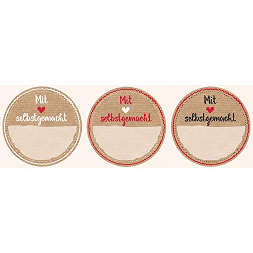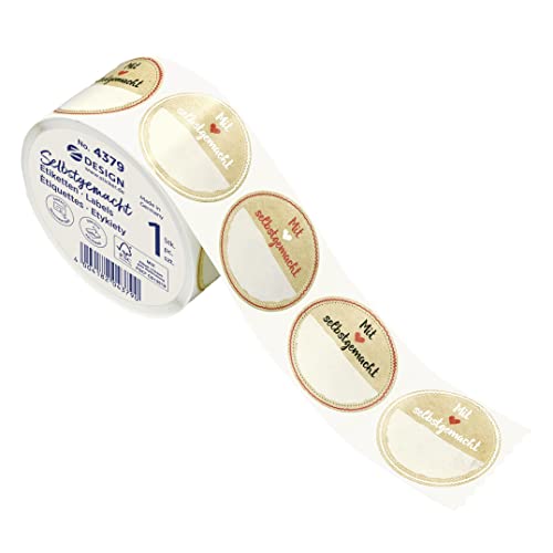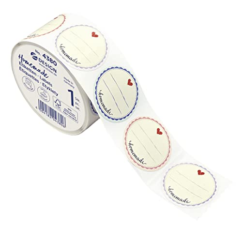 AVERY Syltform syltetiketter självhäftande 600 stycken (tillverkad i Tyskland, Ø 38 mm, klistermärken syltglas, konservering, etiketter, gjorda med kärlek, skriftbar) klistermärken på rulle, 4379