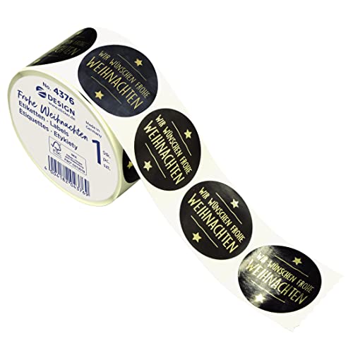 AVERY Zweckform 4376 st 600 st god jul klistermärken (tillverkade i Tyskland, Ø 38 mm, svarta presentklistermärken, självhäftande dekoration, kort, väskor, shoppingkuponger) klistermärken på rulle, 4376