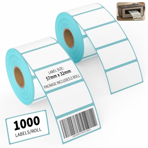 NefLaca Självhäftande etikettklistermärke 57 mm x 32 mm adressetiketter tom rulle rektangulär etikett skriva på anteckningsmärke catering matburkar klibbiga klistermärken för kontor köksskrivare (2