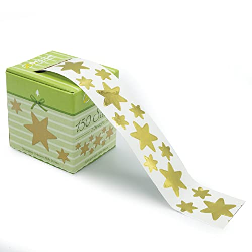AVERY Zweckform 150 klistermärken, julstjärnor, guld (tillverkade i Tyskland, glänsande julklistermärken, guldprägling, självhäftande juldekorationer, presenter, kort, påsar), klistermärken på rulle, 56920