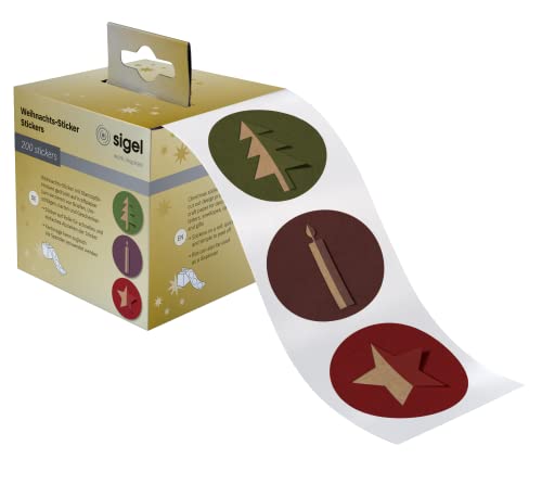 SIGEL CS122 Julklistermärken på rulle, 200 klistermärken, 4,7 x 4,7 cm, "Cut-Out Style", grön, röd, violett