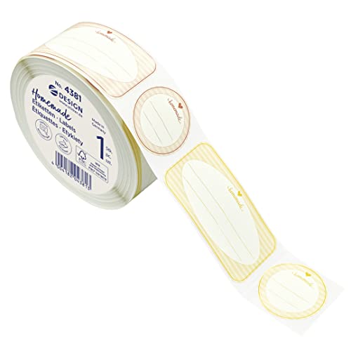AVERY Symarmeladetiketter självhäftande 600 stycken (tillverkad i Tyskland, Ø 38 mm/38 x 75 mm, klistermärke syltglas, konservering, etiketter, avtagbar, Homemade, skrivbar) klistermärken på rulle,