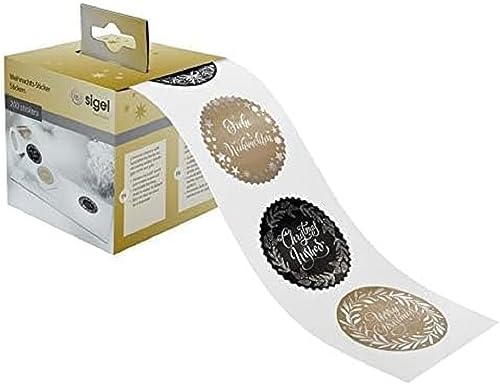 Sigel CS112 julklistermärken på en rulle "Christmas Stars", 200 klistermärken, guld