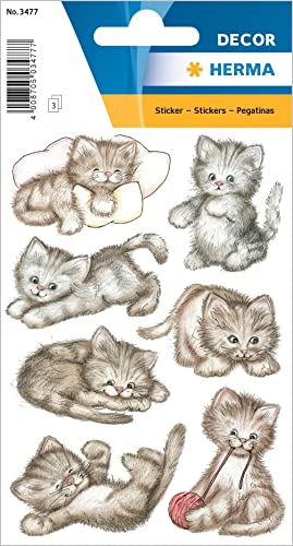 HERMA 3477 roliga djurklistermärken för barn, drollig kattunge (21 klistermärken, matt papper) självhäftande, permanent självhäftande motivetiketter för flickor och pojkar, färgglada