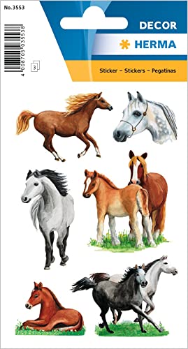 HERMA 3553 djurklistermärken för barn, hästraser (18 klistermärken, matt papper) självhäftande, permanent självhäftande motivetiketter för flickor och pojkar, färgglada