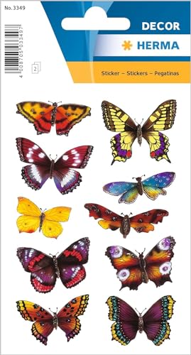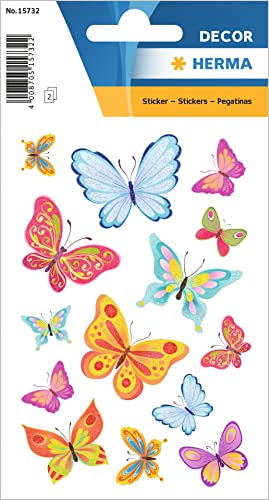 HERMA 3349 djur klistermärken för barn, fjärilar (20 klistermärken, papper, glittrande) självhäftande, permanent självhäftande motiv etiketter för flickor och pojkar, färgglada
