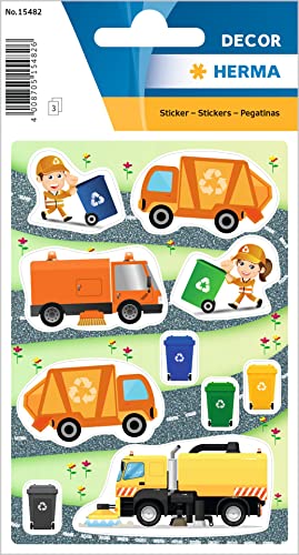 HERMA 15482 Klistermärken för barn, sopman (30 klistermärken, papper, matt) självhäftande, permanenta motivetiketter för flickor och pojkar, färgglada