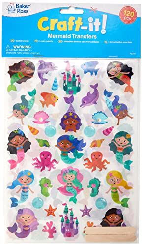 Baker Ross FC841 sjöjungfru gnugga på överföring klistermärken – paket med 120, klistermärken, barn vattentäta hantverksklistermärken, keramiskt trä och papper klistermärken