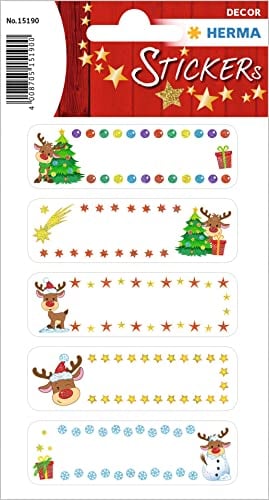 HERMA 15190 julklistermärken, Little Rudolph (10 klistermärken, papper, glittrande) självhäftande juldekoration, permanent självhäftande etiketter för jul, gåvor, hantverk, adventskalender, färgglada