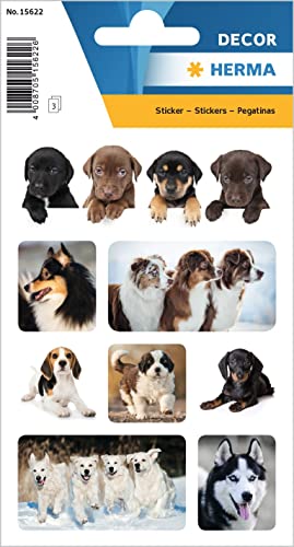 HERMA 3341 djurklistermärken för barn, hundar (27 klistermärken, papper, matt) självhäftande, permanent självhäftande motiv etiketter för flickor och pojkar, färgglada