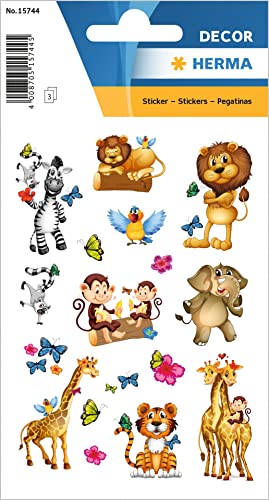 HERMA 15478 Klistermärken för barn, exotiska djur (36 klistermärken, papper, matt) självhäftande, permanenta motivetiketter för flickor och pojkar, färgglada