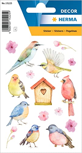 HERMA 15225 djur klistermärken för barn, sångfåglar (48 klistermärken, papper, matt) självhäftande, permanent självhäftande motiv etiketter för flickor och pojkar, färgglada