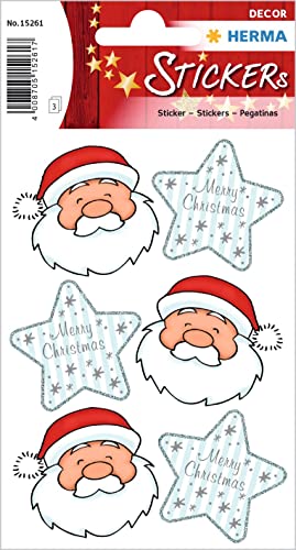 HERMA 3219 julklistermärken, jultomten (63 klistermärken, papper, matt) självhäftande juldekoration, permanent självhäftande etiketter för jul, presenter, hantverk, adventskalender, färgglada