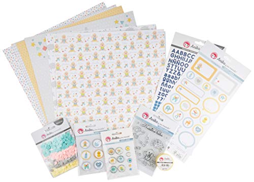 Anita och Su Mundo Collection vårt lilla kit scrapbooking (papper, klistermärken, tallrikar, stämplar, självhäftande abecedary), papper, flerfärgad, 30,5 x 30,5 cm
