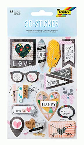 folia 19902 – 3D-klistermärken II, tredimensionella klistermärken av papper, 15 stycken, perfekt för att dekorera gratulationskort, hantverk och scrapbooking