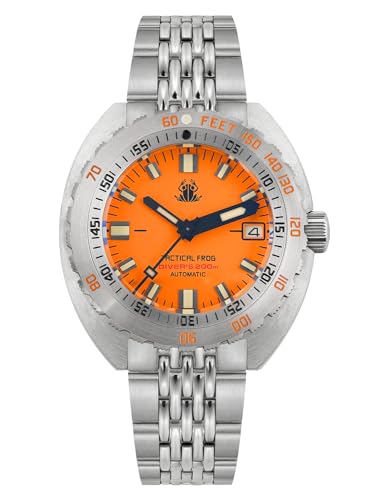 Tactical Frog V3 Klocka för män NH35 automatiskt rostfritt stål 20 ATM vattentäta dykklockor lysande, Orange, armband