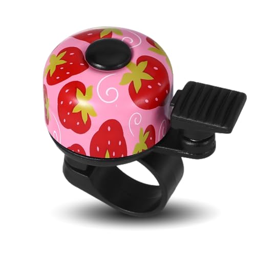 LongHoneySong cykelklocka barn i rosa, 360° klocka, metall, styrmontering, jordgubb
