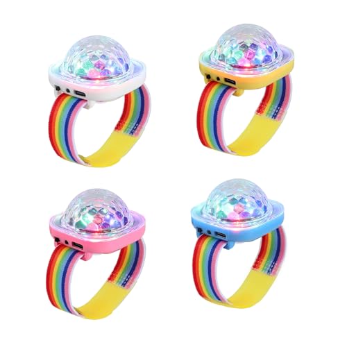 Lancoon Disco Ball lampa, bärbar mini bärbar LED-lampa natt stroboskop klocka armband USB-laddning röststyrd med sugkopp för barn fest bil dans DJ klubb (rosa/gul/blå/vit)