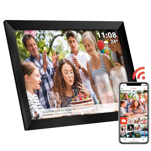 Atlantis 10 tum wifi digital fotoram, pekskärm, dela dina foton och videor via APP, automatisk roterande digital fotoram, klocka och väder, 1 GB RAM + 16 GB minne för foton