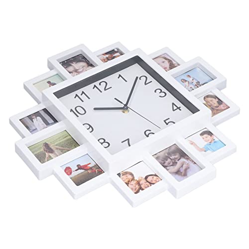 Keenso Fotoram Väggklocka Personlig Multi Foto Diy Klocka för Heminredning Sovrum Vardagsrumskontor, Abs Material 15.35in Vit Bild Ram Vägg