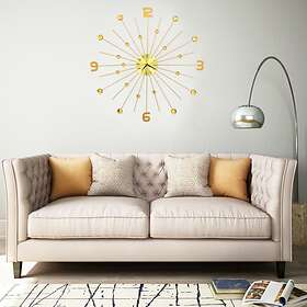 QHENS Väggklocka Spegel Tyst Modern Guld