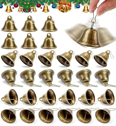 30 st vintage små bronsklockor, julklockor, vintage liten klocka, för att göra vindklockor, juldekorationer, vintage jul ko klockor (38 mm)
