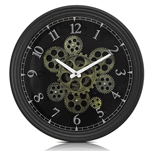 CLXEAST 15 tums äkta rörlig växel, väggklocka, vintage industriell steampunk estetik konst heminredning klocka, liten modern klassisk metall svart guld väggklocka för vardagsrum dekor, kök, kontor