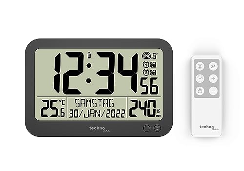 technoline WS8026 Digital radioklocka med fjärrkontroll, kontorsklocka, mötesklocka, radioklocka med temperaturdisplay, timer upp till 240 min, liten klocka, 22,3 x 14,8 cm