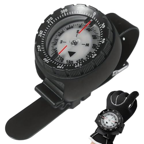 Dyk kompass vattentät nattvision handledskompass exakt undervatten 50 m/164 fot kompass klocka med TPU-band svart, klockarmband kompass