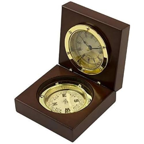 Klocka & kompass set i låda, 9 x 9 cm