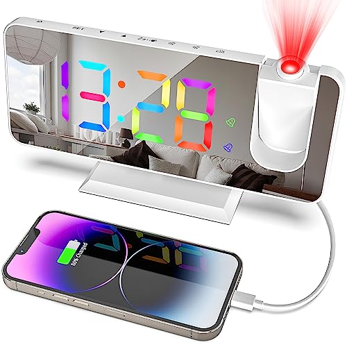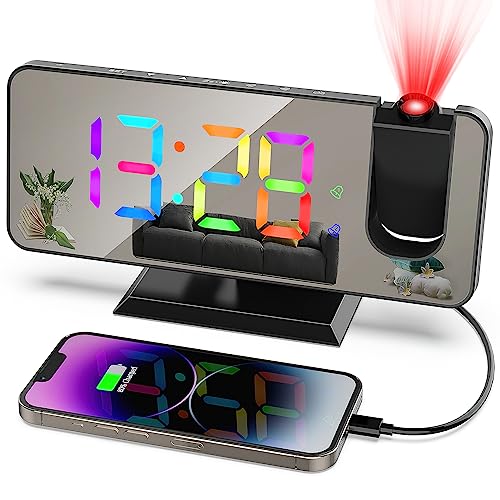 Zerotop 7,4 Tum Väckarklocka Med Projektor - Digital Klocka Med USB-Port, 5 Justerbara Ljusstyrkenivåer, Dubbla Larm, Snooze, 12/24 Timmar - Takprojektor För Sovrum