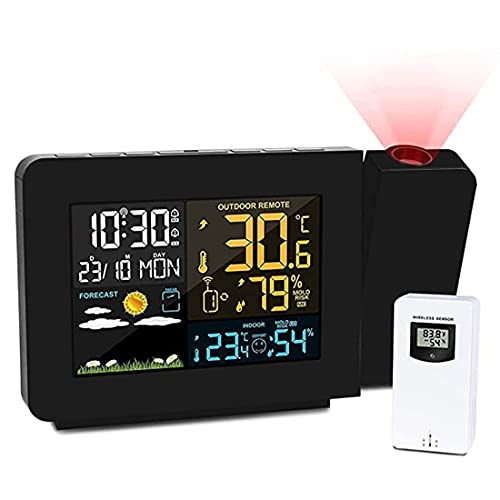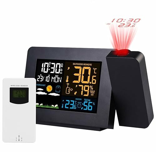 Projektionsväckarklocka väckarklocka väderstationer med utomhussensor visar inomhus,digital Klocka Projektor Väderprognos Temperaturdetektering Vägg Projektor för sovrum kontor vardagsrum