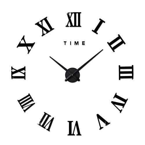 FAS1 Modern gör-det-själv stor väggklocka stor klocka dekal 3D-klistermärken romerska siffror väggklocka hemmakontor avtagbar dekoration för vardagsrum - svart (batteri ingår ej)